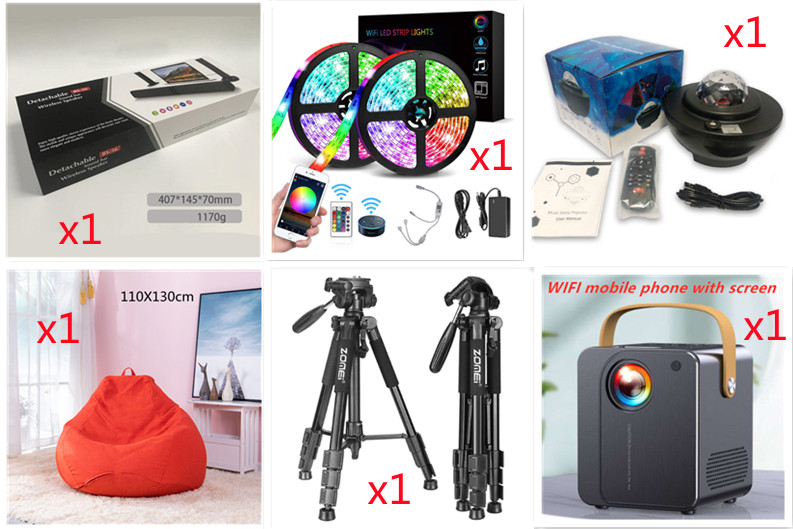 Remote control + charging cable + audio cable + manual